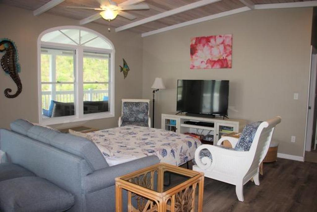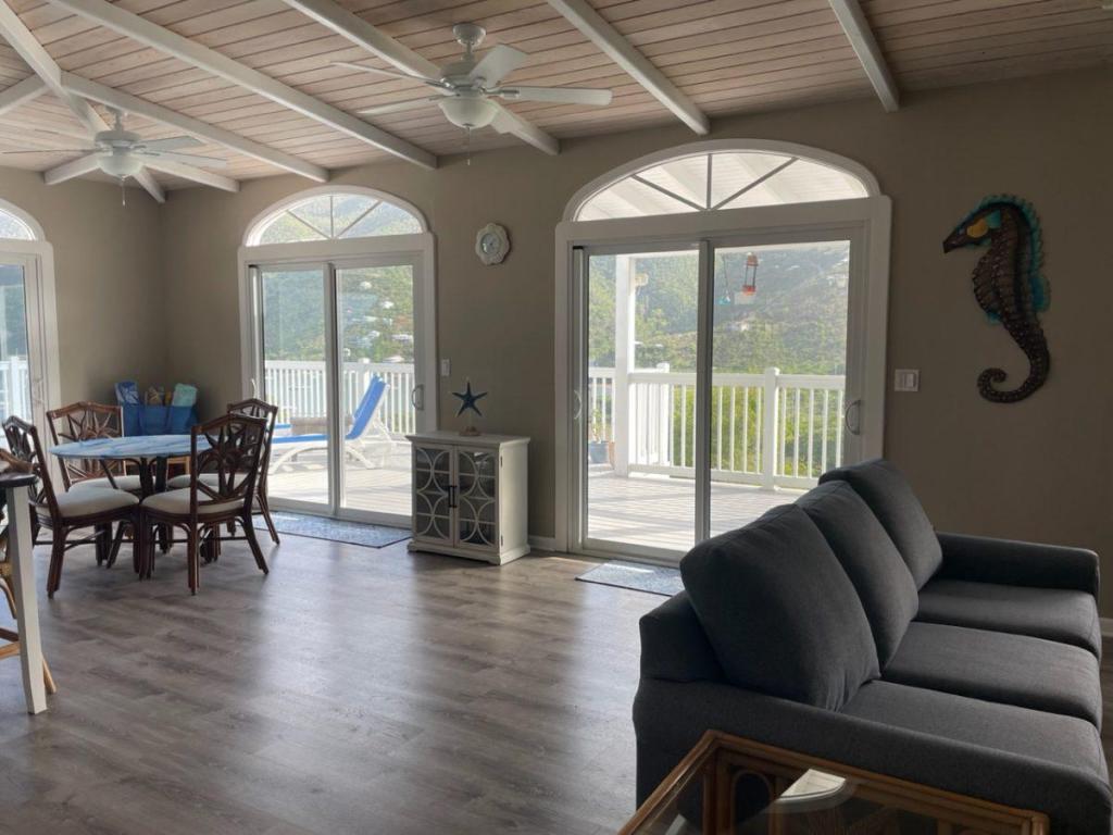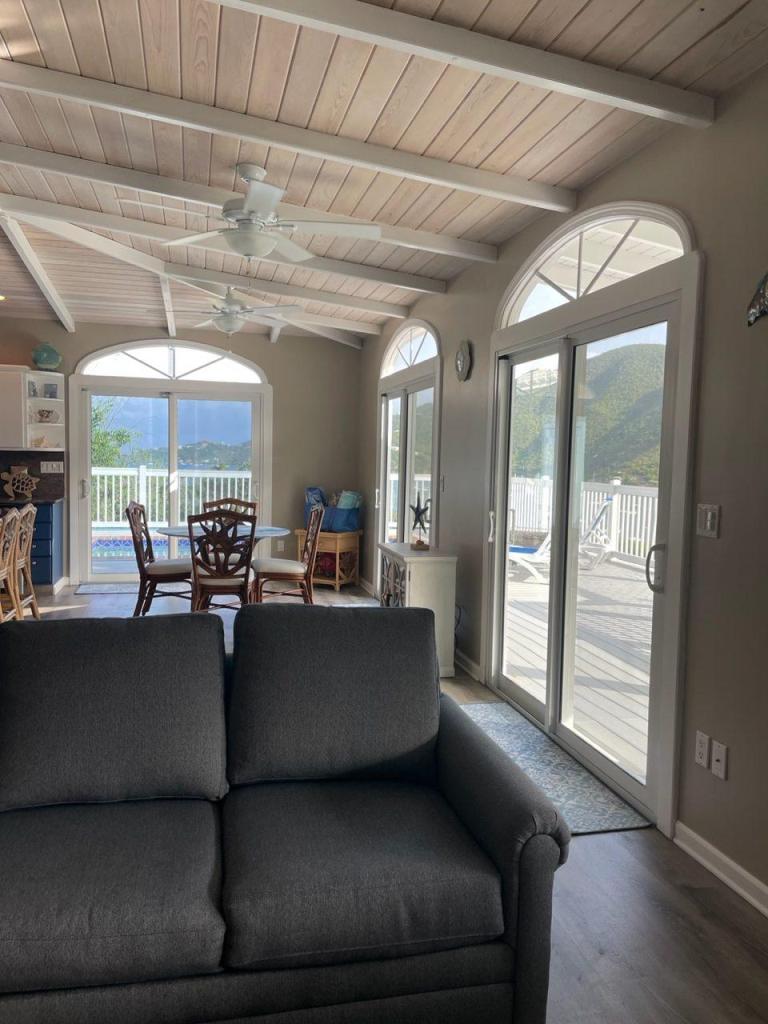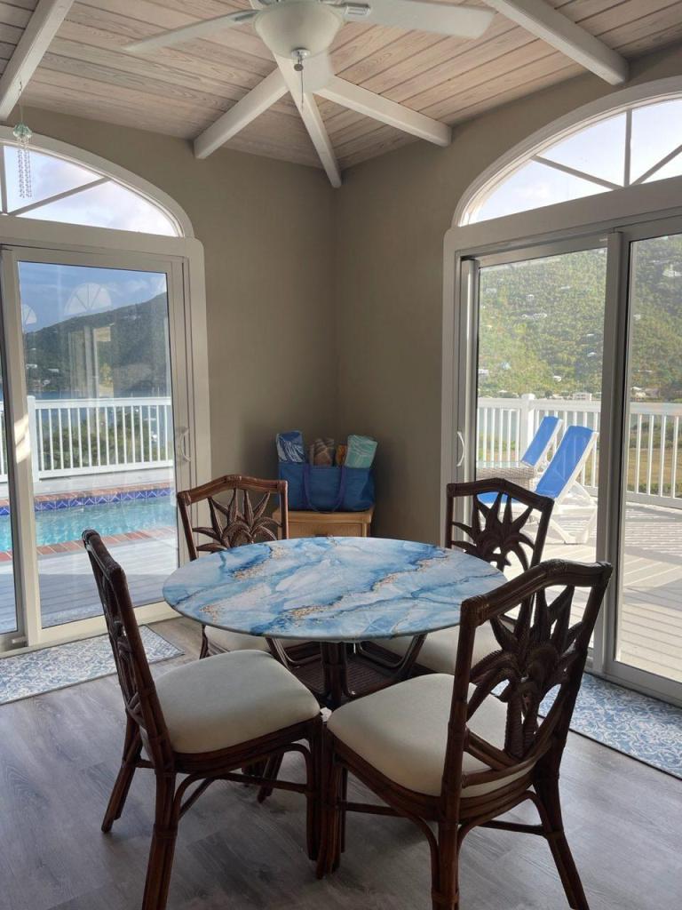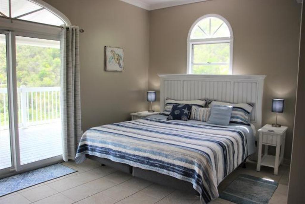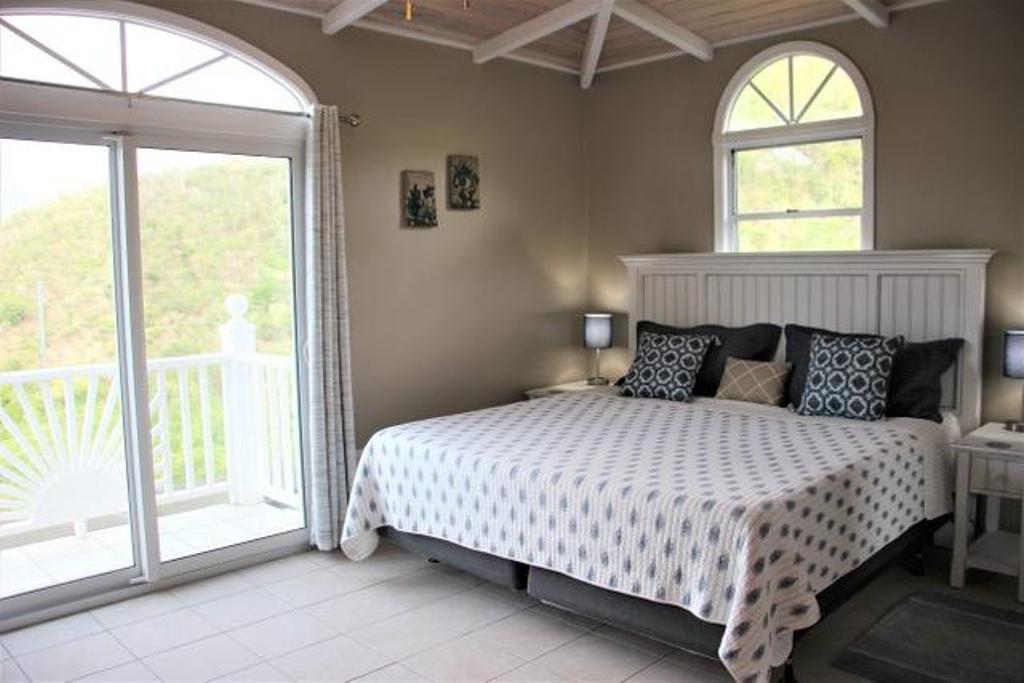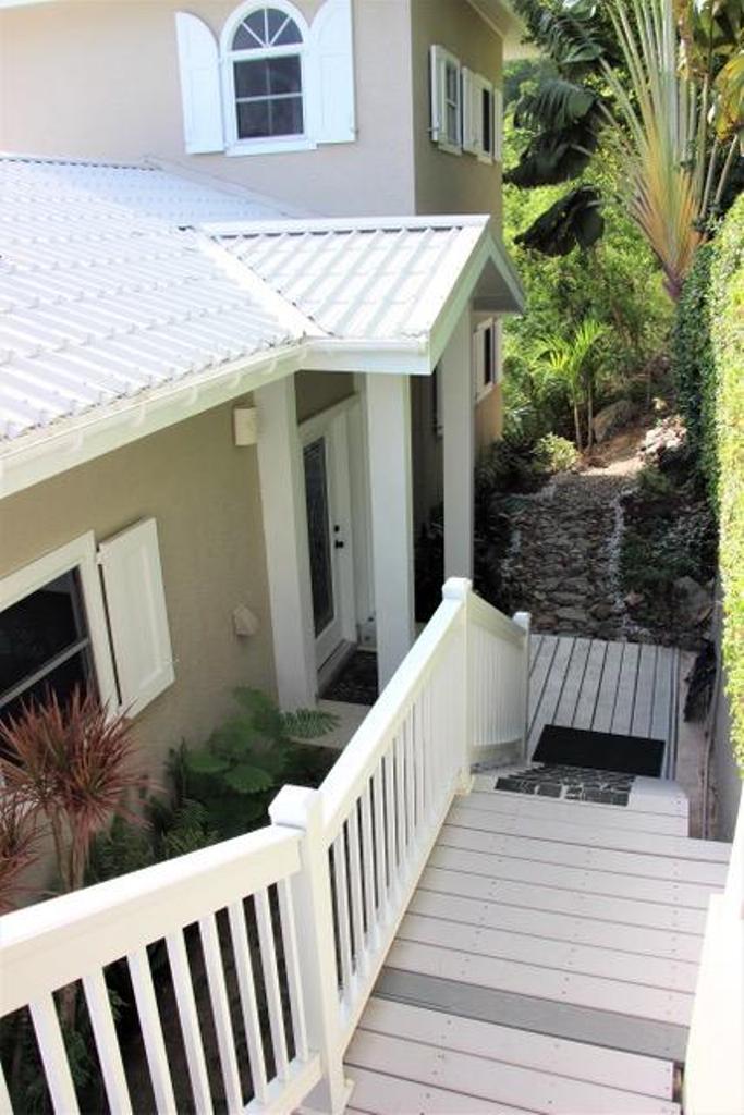 Drive up Seagrape Hill to Desert Rose which offers an excellent parking platform for 2 cars. Steps lead down to an open Caribbean style private home. Desert Rose Villa is decorated in a happy Tropical feel with Caribbeans colors throughout the Villa. Enjoy the cooling, gentle tropical breezes all day and night. Beautiful views of Coral Bay, Moravian Church and Bordeaux Mountain. Enjoy cooking in our gourmet kitchen with granite countertops and new stainless steel appliances and a comfortable island to eat at. The Great Room with its vaulted ceiling and ceiling fans is perfect to read, listen to music, watch T.V. or do nothing at all. The lower King Bedroom opens onto the spacious covered deck and a Spiral Staircase leads to the upper king Bedroom that has a Balcony that looks over the Moravian Church and out to Coral Bay. Both Bedrooms have large lit closets with sliding doors that are mirrored. The Bathrooms both have ceramic title murals in the showers and glass block partitions.Take a dip in your private pool to cool down after a day at the Beach. Enjoy the large sundeck and a convenient outdoor bathroom. Sunshine all day and a covered veranda gets you out of the sun and cool off with the ceiling fans. Watch the Moon come over the Pool and the brilliant Stars dancing in the sky while sipping a Caribbean Cocktail. In the morning sit on the deck with your Breakfast and Coffee and watch the Hummingbirds and Yellow Birds greet the new day.